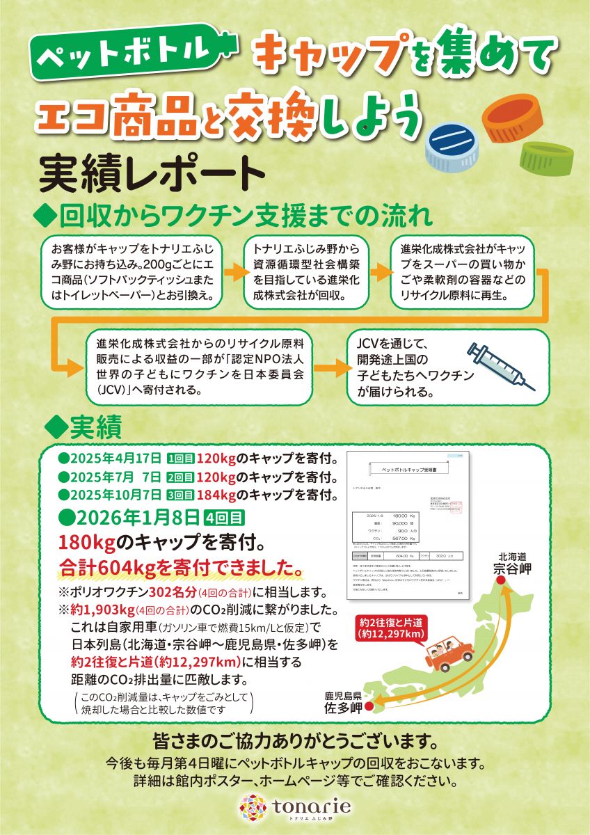 ペットボトルキャップを集めてエコ商品と交換しよう (毎月第4日曜日開催) 13:00~17:00
