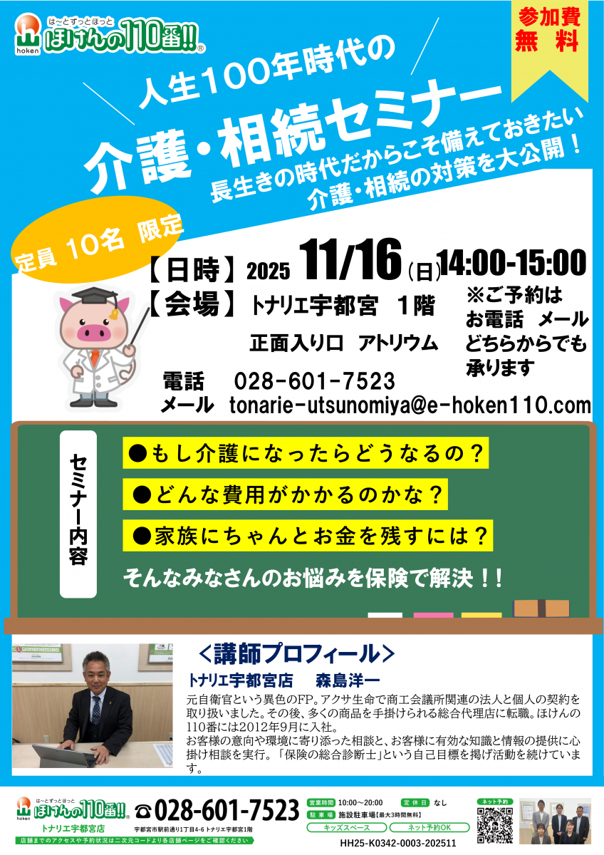 【ほけんの110番】\人生100年時代の/介護・相続セミナー開催!