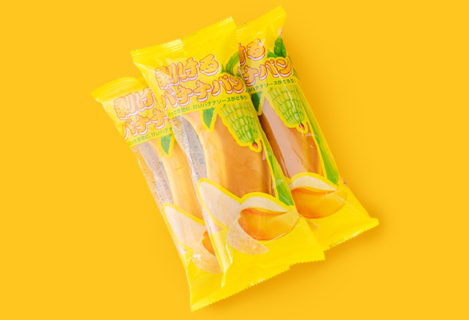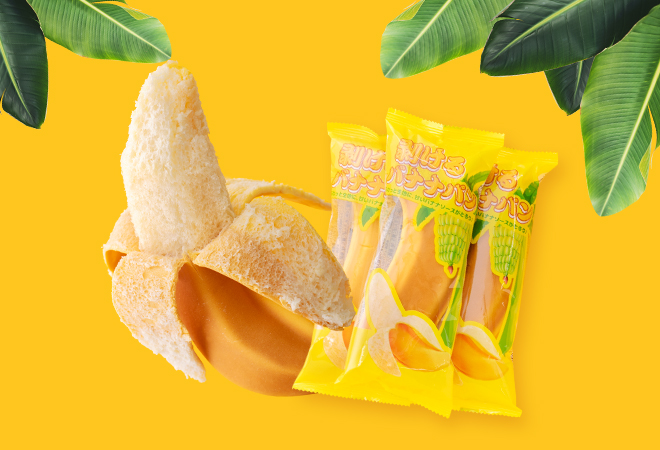 本物のバナナのように皮が剥ける「剥けるバナナパン」。袋から取り出して皮をめくると、ふわふわのパン生地と、とろ~りバナナソースが登場。見た目も味もユニークで、遊び心いっぱいに楽しめる新感覚スイーツです。動画映えまちがいなしの商品。