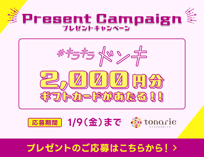 「キラキラドンキ」で使える2,000円分のギフトカードをプレゼント!下記の「応募フォーム」からご応募ください。