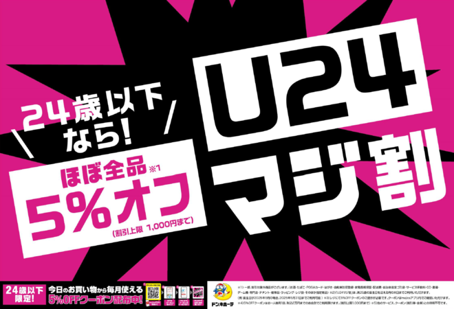 ■24歳以下なら毎月5%OFFクーポン配信中「U24マジ割」