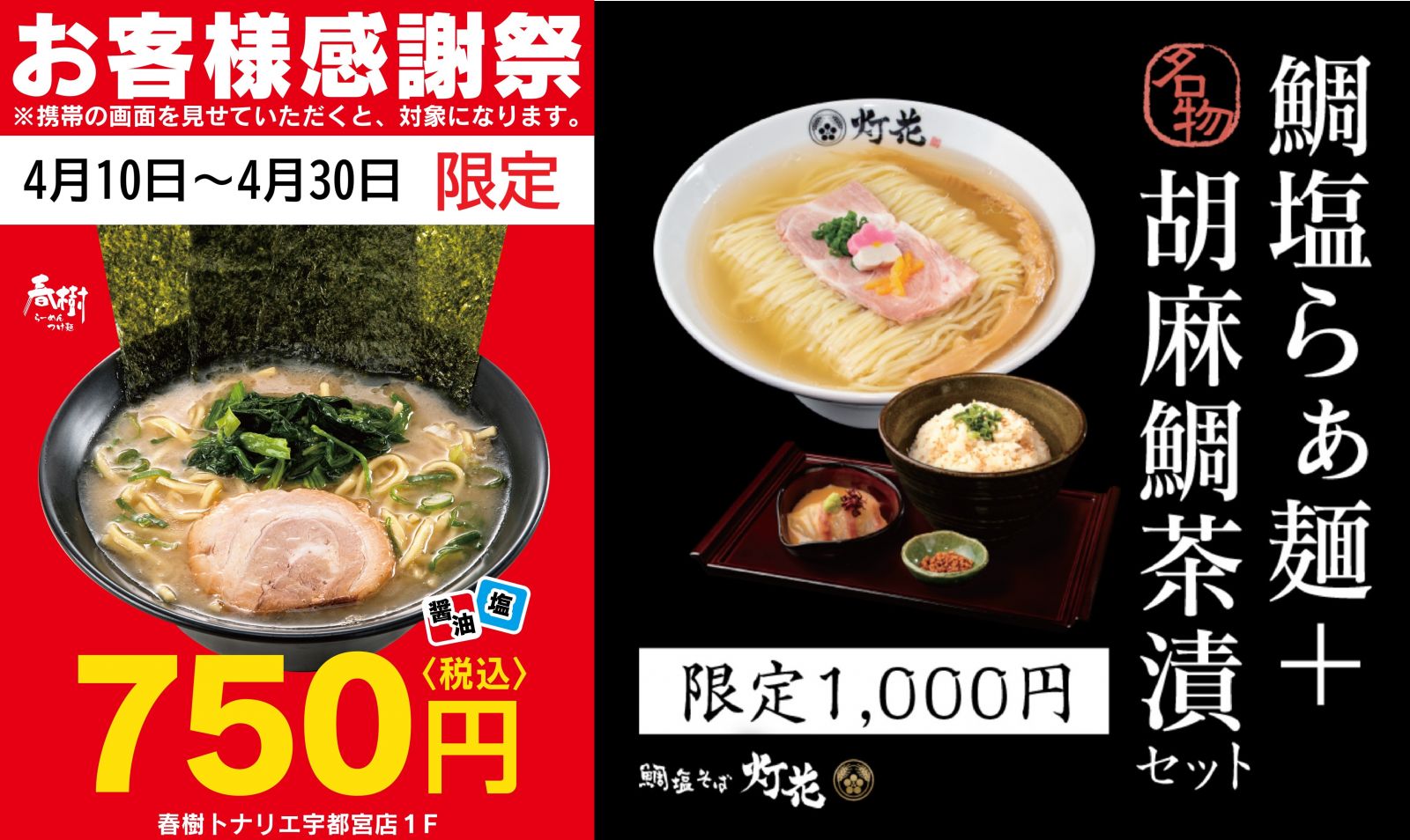 つけ麺 らーめん 春樹/鯛塩そば 灯花 お客様感謝祭