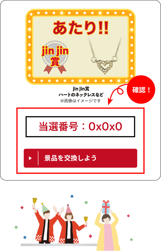 景品交換所へは、「当選した抽選券」・「当選通知メール」・「当選画面のスクリーンショット」のいずれかをお持ちください。