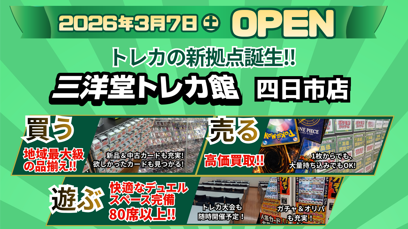 2026年3月7日(土)、トナリエ四日市4Fに三洋堂トレカ館 四日市店がオープンいたします。