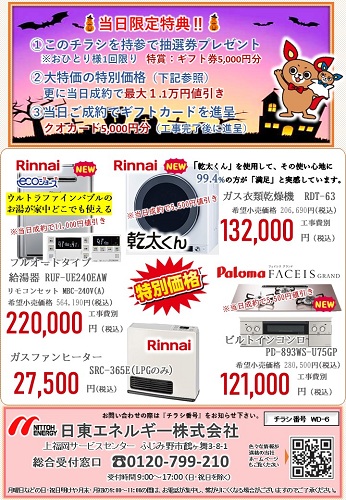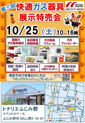 快適ガス器具展示特売会 10/25㈯10:00~16:00