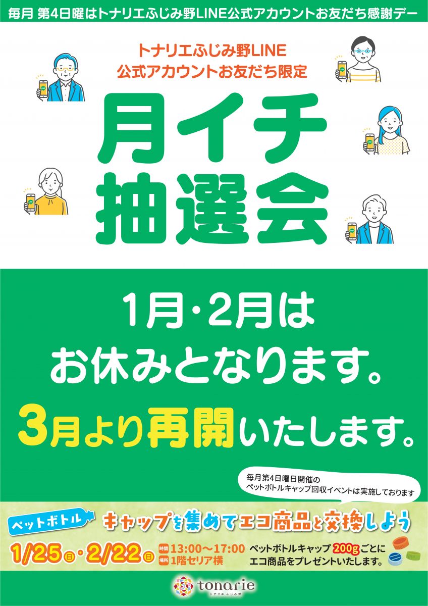 月イチ抽選会 ※1月2月は、お休みです