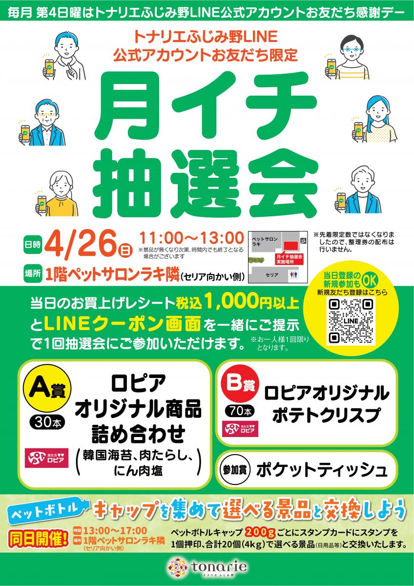 月イチ抽選会(LINE公式アカウントお友だち限定) 4/26㈰ 11:00~13:00