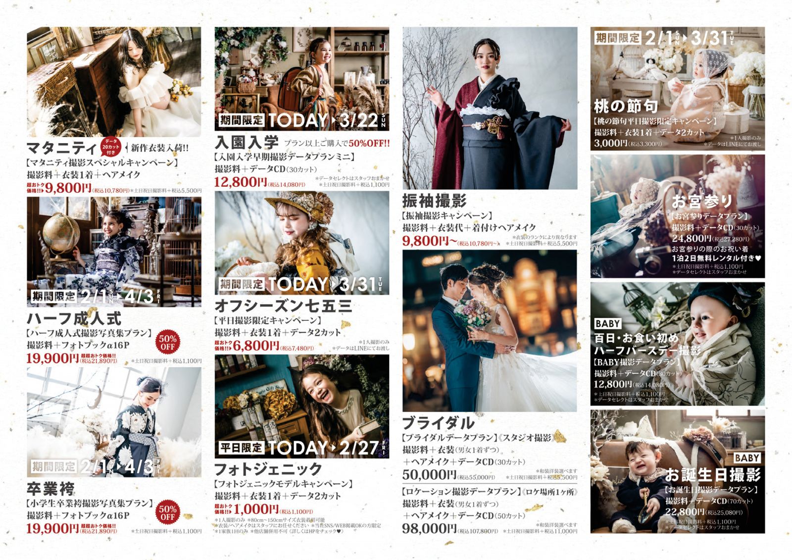 通常価格44,800円(税込49,280円)のところ、今なら50%OFF!→22,400円(税込24,640円)※土日祝撮影料+1,100円(税込)