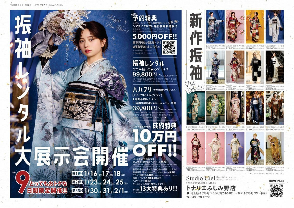 Studio Ciel 2026年七五三オフシーズンキャンペーン❤入園入学(卒園卒業/進級)早期撮影キャンペーン❤新年スタート振袖レンタル大展示会開催❤