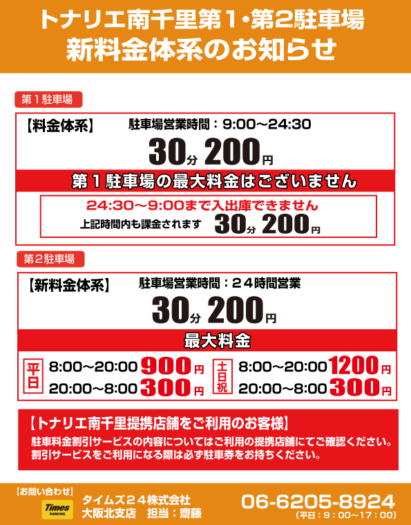 ◆【新料金体系】 最初の30分200円、それ以降30分毎に200円