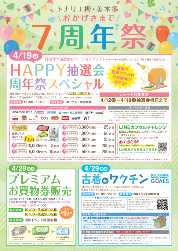 4/29(水祝)500名様限定プレミアムご利用券7周年祭記念特別販売!!🎊