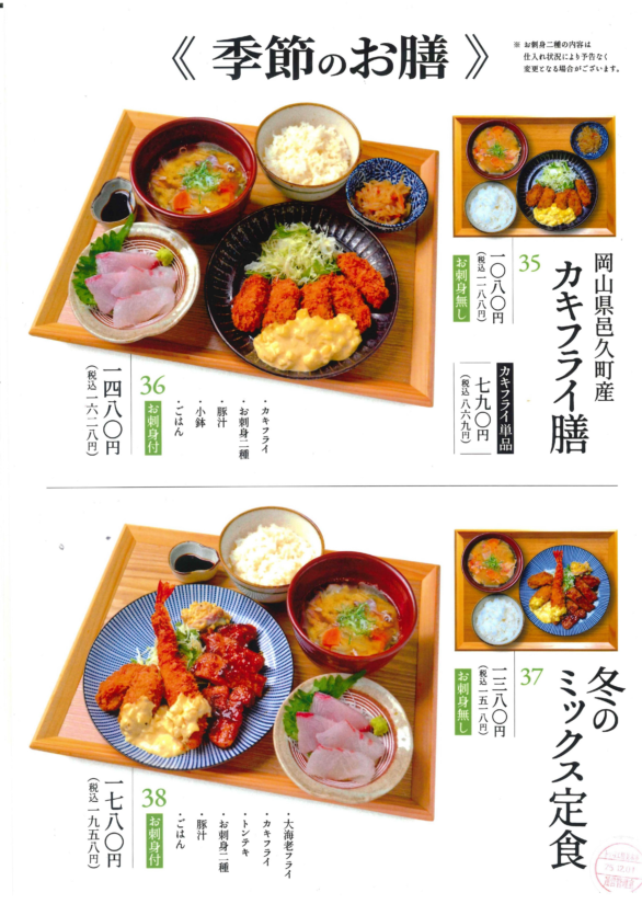 ニュース&トピックスNews & topics トナリエ栂・美木多 TOP > ニュース&トピックス > <膳や>冬メニュー⛄カキフライ膳 ニュース <膳や>冬メニュー⛄カキフライ膳 前の記事へ一覧へもどる次の記事へ