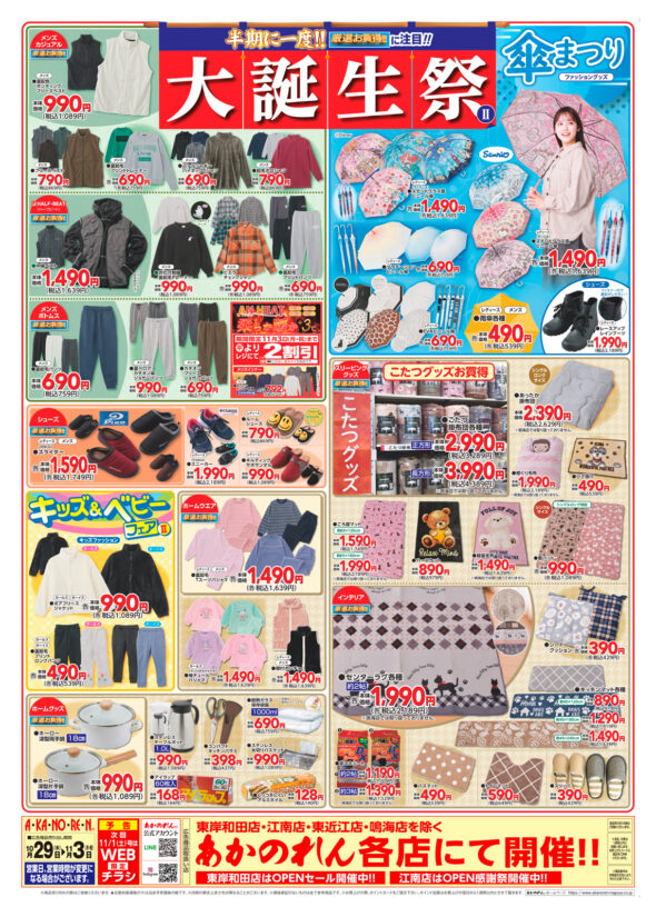 ニュース&トピックスNews & topics トナリエ栂・美木多 TOP > ニュース&トピックス > <あかのれん>半期に一度!大誕生祭10月29日(水)~11月3日(月祝) ニュース <あかのれん>半期に一度!大誕生祭10月29日(水)~11月3日(月祝) 前の記事へ一覧へもどる次の記事へ