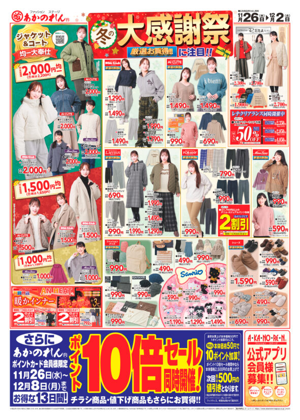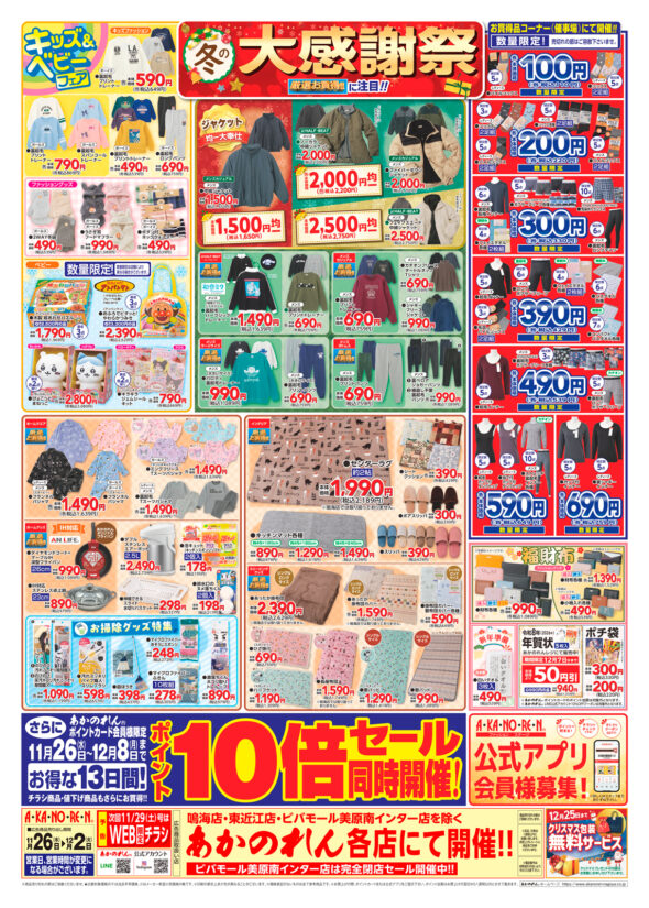 ニュース&トピックスNews & topics トナリエ栂・美木多 TOP > ニュース&トピックス > <あかのれん>冬の大感謝祭br>11月26日(水)~12月2日(火) ニュース <あかのれん>冬の大感謝祭br>11月26日(水)~12月2日(火) 前の記事へ一覧へもどる次の記事へ