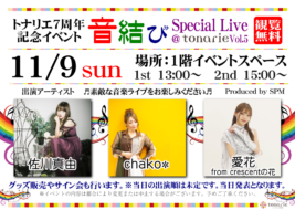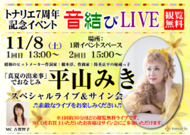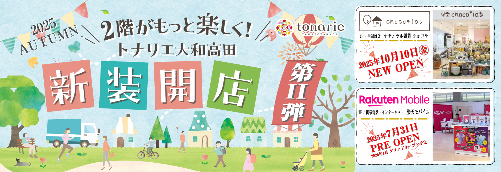 イベント / ニュース&トピックス 11月9日(日) 音結びSpecial Live@tonarie Vol.5詳しく見る 10月1日から、図書返却ポストを設置しました詳しく見る 11月8日(土) 「平山みき」スペシャルライブ&サイン会詳しく見る 2025年秋 2階がもっと楽しく!!新装開店 第2弾!!詳しく見る 屋外ベンチ リニューアルしました詳しく見る シンガポール発!IJOOZ 販売中!詳しく見る 駐車場優待&各店舗電話番号について詳しく見る 公式LINE お友だち募集中!詳しく見る イベントの一覧を見る ニュース&トピックスの一覧を見る トナリエについて 施設・サービス案内 詳しく見る スタッフ募集! 詳しく見る チラシダウンロード 詳しく見る