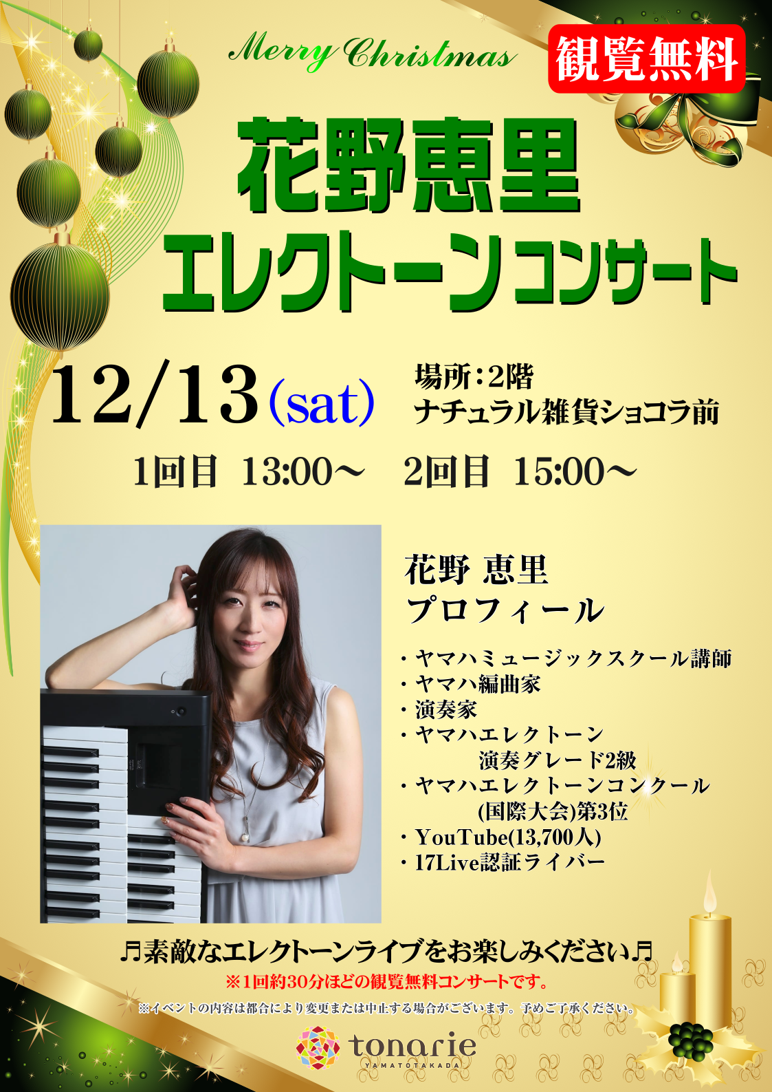 Xmas 花野恵里 エレクトーンコンサート 観覧無料
