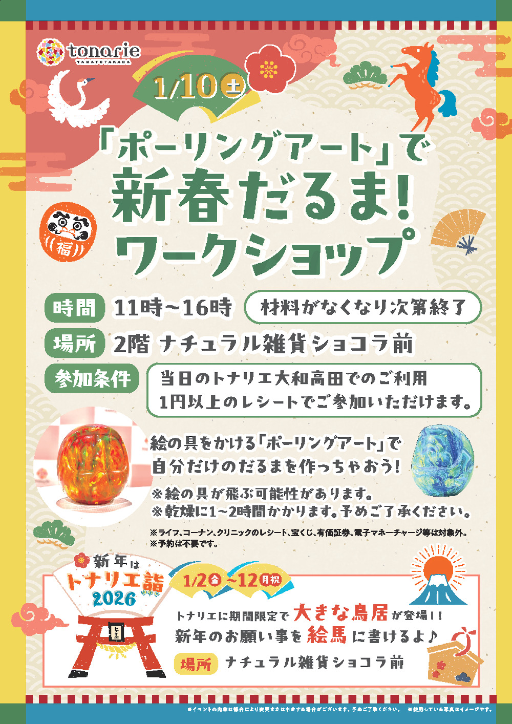 参加条件 当日のトナリエ大和高田でのご利用1円以上のレシートでご参加いただけます(お一人様1回限り)