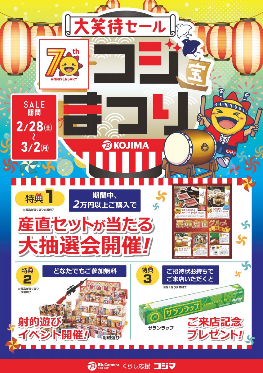 コジマ×ビックカメラ 【2/28(土)、3/1(日)、3/2(月)】 お得なコジまつり開催